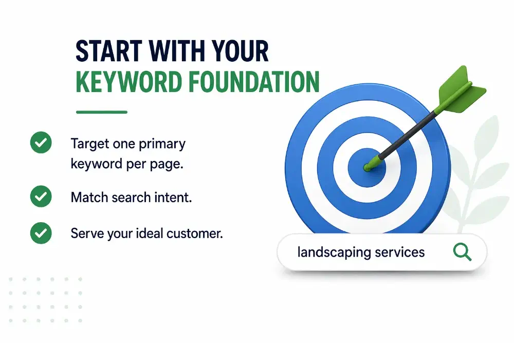 Choose a keyword that reflects what the page is actually about and matches what your ideal customer would type into Google. A landscaping company’s service page shouldn’t target “landscaping” — it should target something like “residential landscaping services in Portland.”